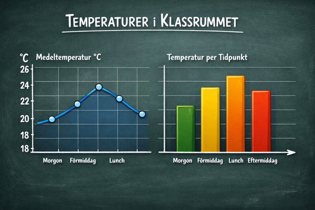 Under den här lektionen får eleverna använda verkliga temperaturmätningar från klassrummet för att förstå hur statistik hjälper oss att tolka variationer och mönster i vår omgivning. Eleverna tränar på att beräkna och tolka statistiska mått samt koppla matematiken till faktorer som påverkar inomhusmiljön.